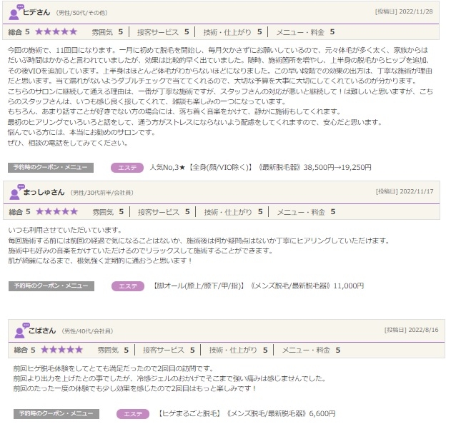 訳①千葉県メンズ脱毛サロン 口コミランキング175店舗中~第6位~