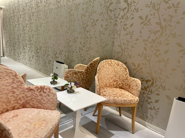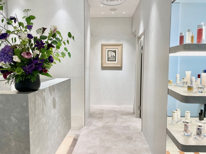 ミス・パリのサロンのテーマは“可憐で気品あふれる空間”。ホワイトカラーをベースに、 落ち着いた色調の組み合わせで、大人のサロンを演出しました。