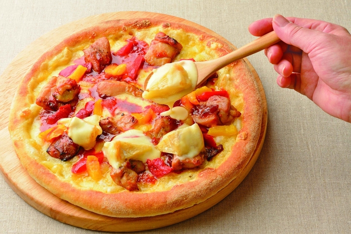 隠し味はお餅!こぼれ落ちるほどのチーズを後乗せして味わう 新感覚ピザ「チーズフォンデュ タッカルビ」登場! 主に大阪に展開するピザ・サントロペで3月31日まで提供! | NEWSCAST