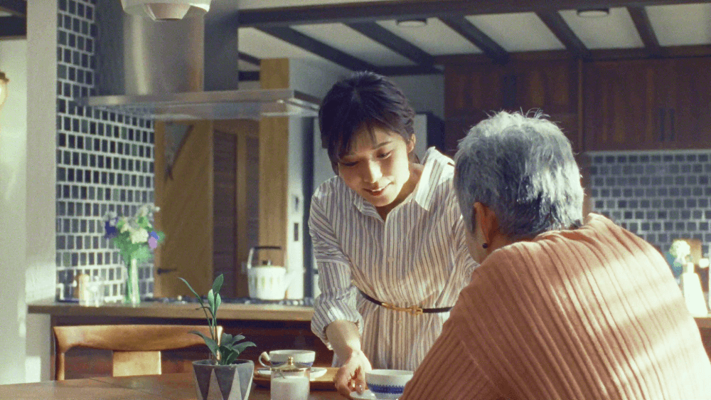 さらに、メイキング映像とともに、撮影や今回の衣装の感想などを語るインタビューも公開します。「(撮影でこだわった点は)お姑さんとの距離感です」と語り、松岡さんの俳優としてのプロ意識が垣間見える内容となっています。