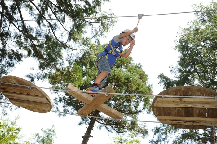 自分自身でコネクターを付け換えながら安全確保を行い、樹上を冒険する「ツリー トップ アドベンチャー」を、より小さな子どもたちから体験できるように改良したコースのこと。