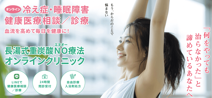 東京TMクリニックは、患者の家庭のお風呂を治療現場に純正重炭酸入浴剤を処方し、症状に応じた入浴法を専任入浴指導士が指導。何をやっても治らなかった冷え症や、冷えによる睡眠障害、及び、アトピー性皮膚炎等でお悩みの方を対象に、オンラインで健康医療相談/診療を行う「長湯式重炭酸温浴NO療法オンラインクリニック」サービスを、3月15日の世界睡眠デーより開始予定。