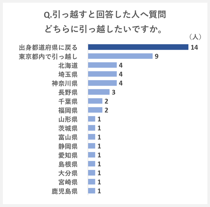 「引っ越す」と回答した51人中14人が「出身都道府県に戻る」