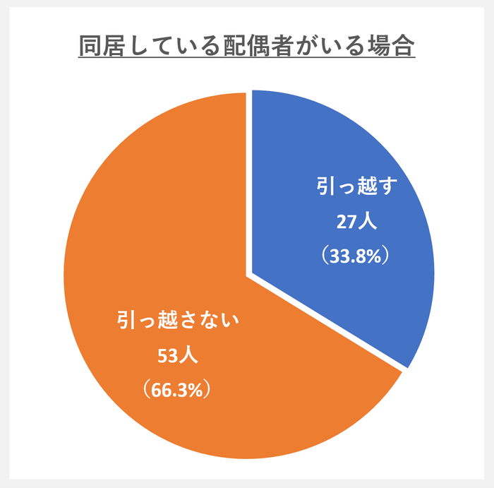 「配偶者あり」と回答した80人中53人(66.3%)が「引っ越さない」と回答していました。