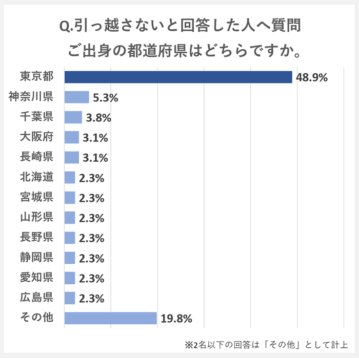 「引っ越さない」と回答した131人中64人が東京都出身
