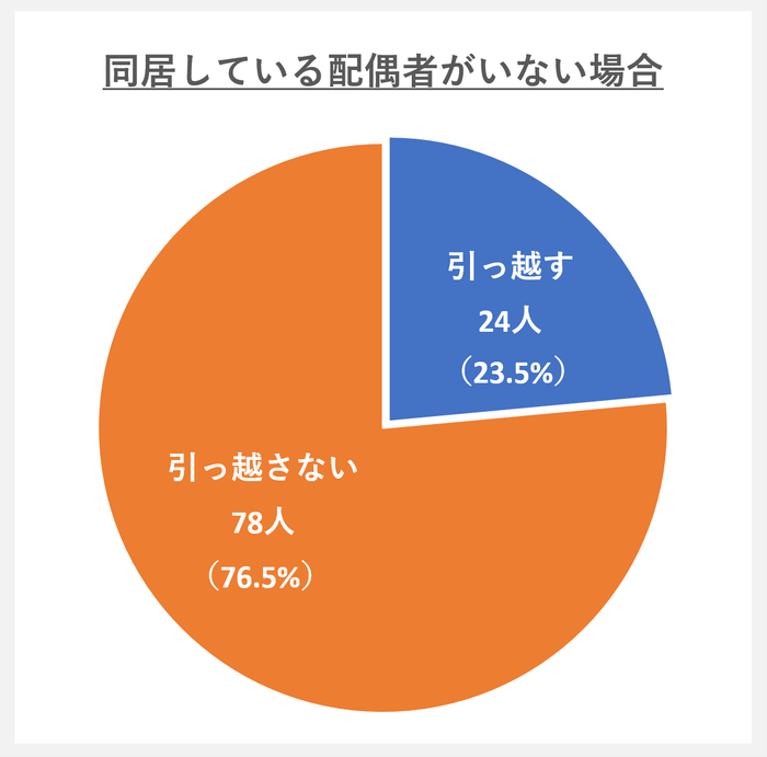 「配偶者なし」と回答した102人中78人が「引っ越さない」