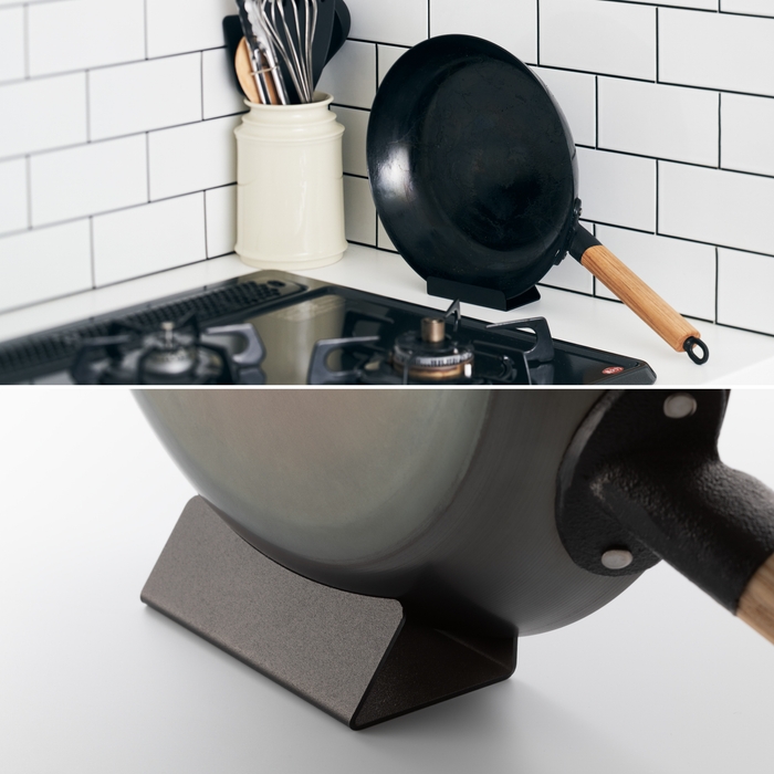 専用のスタンドを使うことで鉄フライパンを立てて取り出しやすく収納することにこだわりました。