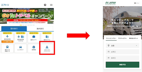 当社子会社が運営する「キャンピングカージャパン」を 「エアトリ」の「キャンプ・アウトドア」として提供開始!