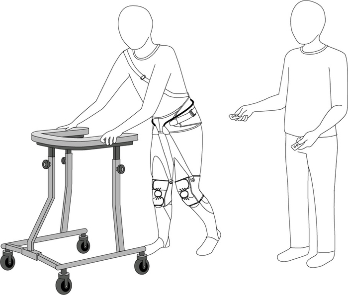 対象者の歩行に応じたタイミングで介護従事者が無線スイッチをON/OFF