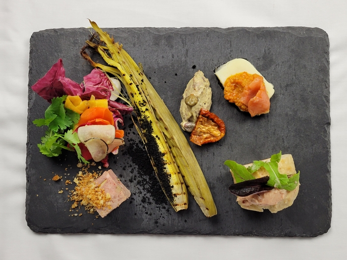 ワインバーでありながら全国各地から厳選した上質な肉、新鮮な海産物、生き生きした野菜で創る独創的な料理とワインのマリアージュをカウンターで気負わず愉しんでいただくフレンチ割烹スタイルです。