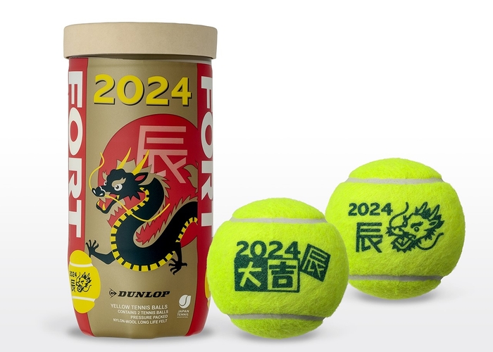 住友ゴムグループの(株)ダンロップスポーツマーケティング(社長:木越 浩文)は、来年の干支である「辰」のイラストと「2024」の文字をプリントした硬式テニスボール「ダンロップ フォート 干支ボール(2024年「辰」)」(2球入/ペット)および、「ダンロップソフトテニスボール(公認球)干支ボール」を11月25日から数量限定で販売します。硬式テニスボールはオープン価格、ソフトテニスボールのメーカー希望小売価格は2球入が880円(税抜価格800円)、1ダースが5,280円(税抜価格4,800円)です。また、ダンロップスポーツ公式オンラインストアでは、「ダンロップ フォート 干支ボール(2024年「辰」)」を2ボトルと「Dunlop Australian Open」を1ボトルの合計3ボトルをセットにした「硬式テニス干支ボール特別セット」を2,475円(税抜価格:2,250円)で販売します。テニス好きな方への贈答用におすすめです。