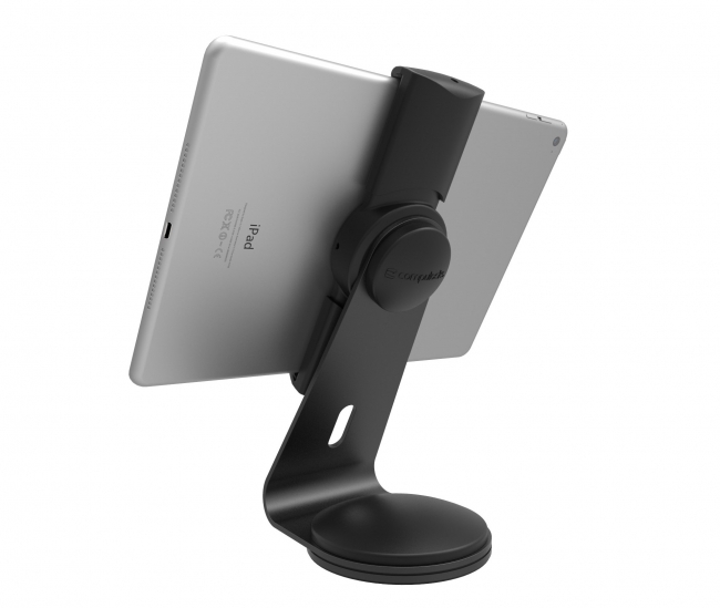 これまでのスタンドは、タブレットのサイズや機種への依存度が高く汎用性が課題でした。日本初上陸の同シリーズは、堅牢かつスタイリッシュなアームでタブレットをロックすることで盗難から守り、最適な位置で固定し落下を防ぎます。初代を除くiPad全モデルのほか、Surface Pro 3/4やXperia Zシリーズなど多種多様な機種に対して、たった一つのホルダーで適合し、かつ設置環境を選びません。端末交換時のスタンドの買い替えが不要になるため低コスト化にも貢献します。VESA準拠により、コンピュロックス社のマウント(固定台)だけでなく、市販のスタンドやモニターアームなどと組み合わせることであらゆるシチュエーションで利用可能です。端末を自在に左右回転できる「クリング」は、ブラック、ホワイト、シルバーの3色を発売します。