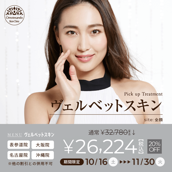 【表参道スキンクリニック】ヴェルベットスキンが今なら20%OFF
