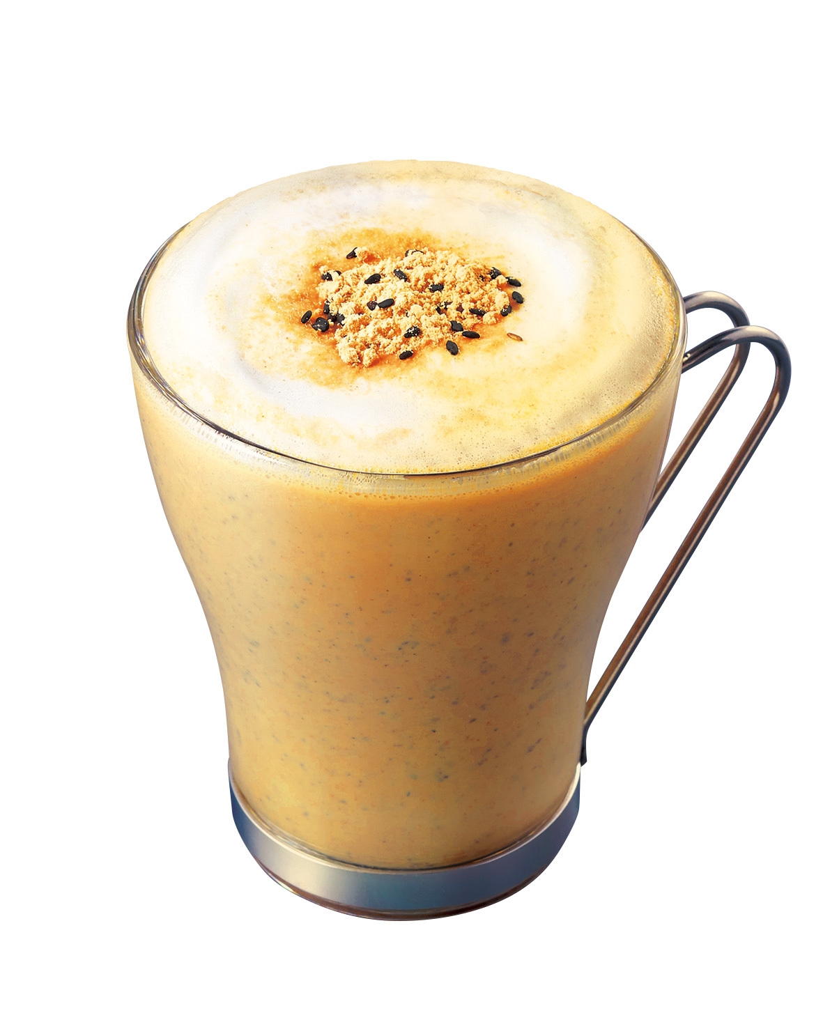 黒ごまきな粉ラテは、牛乳がなくても簡単・手軽に黒ごまきな粉を美味しく飲んでいただくため、生クリームや黒糖等を使い、コク深い味わいの贅沢な和風ラテをイメージして仕上げました。