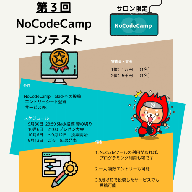 プログラミング不要でWebアプリを作るNoCodeCampコンテスト、第3回優勝決定!!