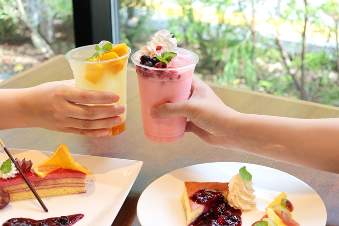 どなたでも利用可能なカフェタイムには、フルーツやアイスクリームなどがトッピングされた6色の冷たいモクテルと、3種類のケーキの中から好みのものを選べ、子供から大人まで幅広い年齢層が楽しめる「ハッピーカラー&スイーツデュオ」を1,500円で販売します。