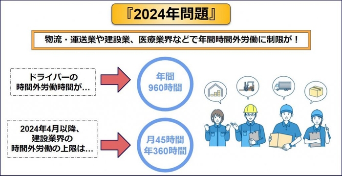 物流業界以外でも「働き方改革関連法」は施行されるため「2024年問題」の影響が考えられます。