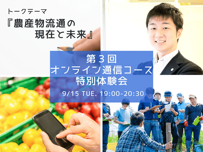 『第3弾オンライン通信コース特別体験会』では、現在注目度が上がっている「農産物流通」をトークテーマに講義いたします。私たちの食卓の大部分を占める大規模流通から、生産者と直接つながる産直ECまで様々な視点から現在と未来の農産物流通についてお話いたします。
