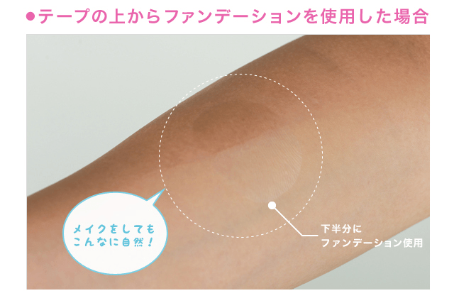 透明で、なおかつ表面に肌に似せた特殊加工をしているから、どんなトーンの肌に貼ってもテカりを抑えて目立ちにくいフィルムです。上からメイクもできるので、女性の方にもおすすめです。
