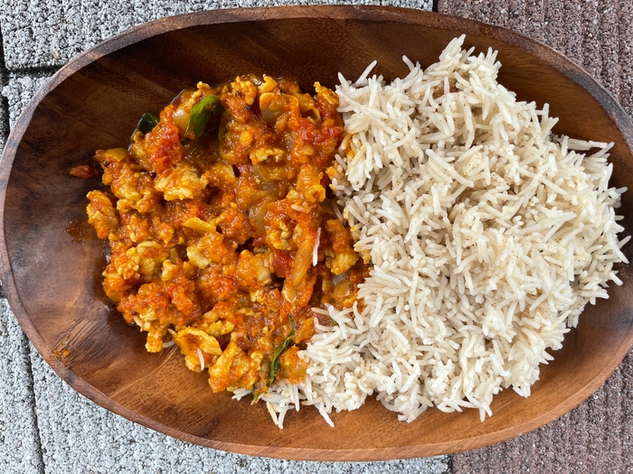 「モンゴルカレー」の特徴は、ガツンと効いたスパイスとトマトの酸味と出汁の旨み、それらが一体となったナチュラルな味わいを楽しめることです。スパイスで炊いた高級米バスマティライスは、ほぼビリヤニ状態で提供される本格派。