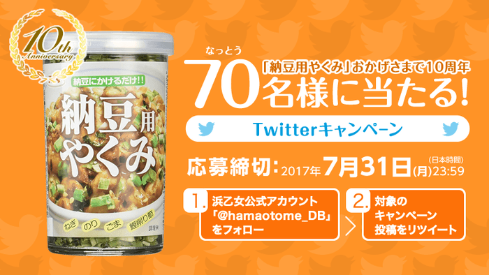 7月10日(月)は「納豆の日」! 浜乙女“納豆専用のやくみ”が当たるTwitterキャンペーン開催! ~スペシャルサイト「納豆とやく美」も公開中!~ | NEWSCAST