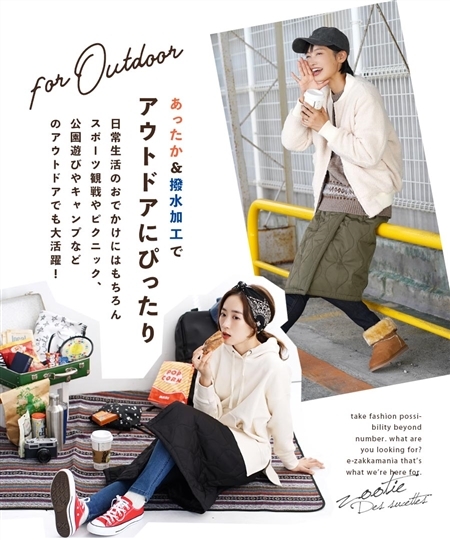 日常生活のおでかけはもちろん、スポーツ観戦やピクニック、公園遊びやキャンプなどのアウトドアシーンまでサニーヒートキルティングラップスカートとともに寒い冬の外出をよりいっそう快適にお過ごしください。