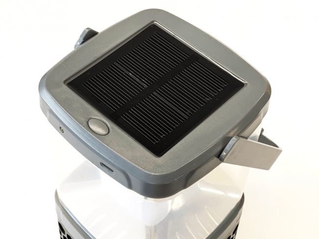 上面にソーラーパネルがついており、4V/100mAhの充電速度で充電可能。災害時でもソーラー充電ができれば、コンセント不要で停電時の明かりとしても利用できます。