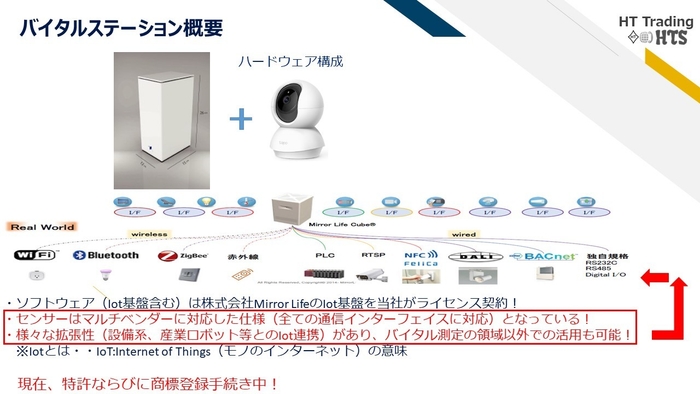 また、「バイタルステーション」は様々な通信インターフェイスに対応しているため、オフィスのIoT化や病院内設備とのIoT連携、介護機器やロボットとのIoT連携などといったバイタル測定以外の様々なシーンにも活用できる拡張性を備えています。
