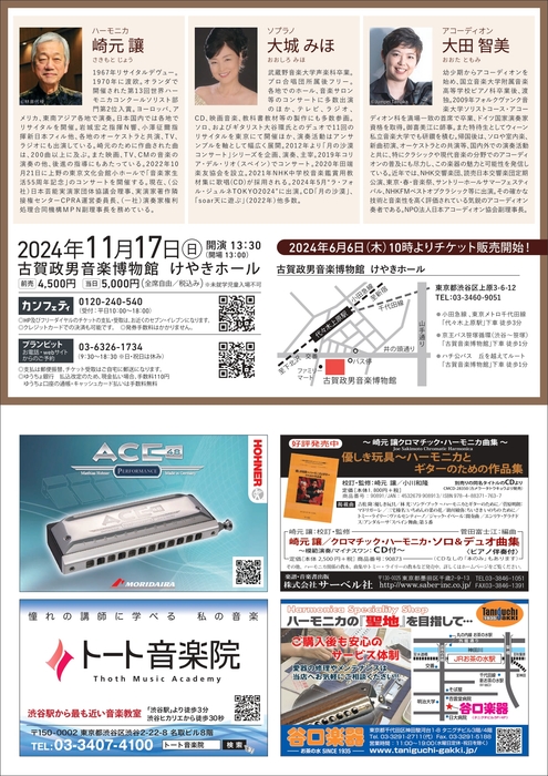 『ファンタスティック・トリオⅡ~HARONICA・SOPRANO&ACCORDION』チケット販売開始 古賀政男の遺志を引き継ぎ誕生した音楽博物館で披露されるこころあたたまるサウンド
