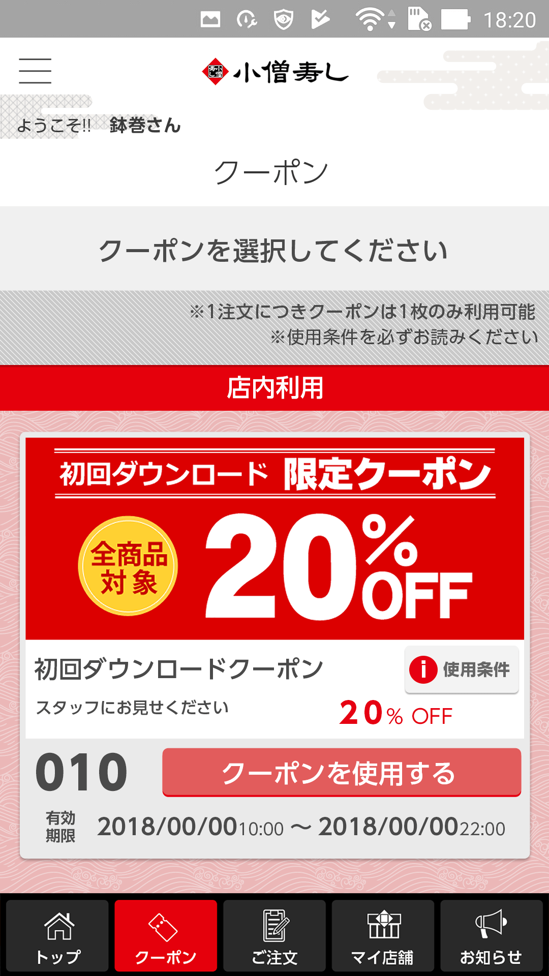 店舗やアプリ内の事前注文使えるお得なクーポンを無料で配信