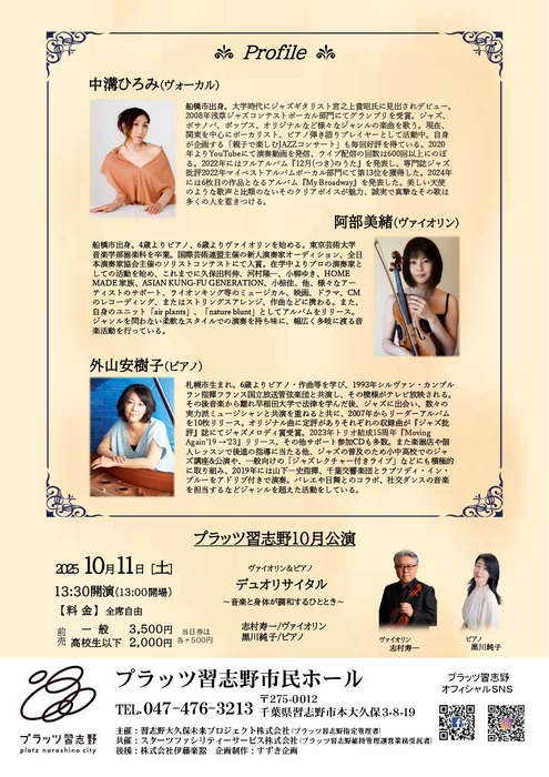 『My Broadway ジャズと弦楽器と歌で綴るミュージカル』が2025年9月28日 (日)に習志野市民ホール(プラッツ習志野)(千葉県 習志野市 本大久保 3丁目8−19)にて開催されます。