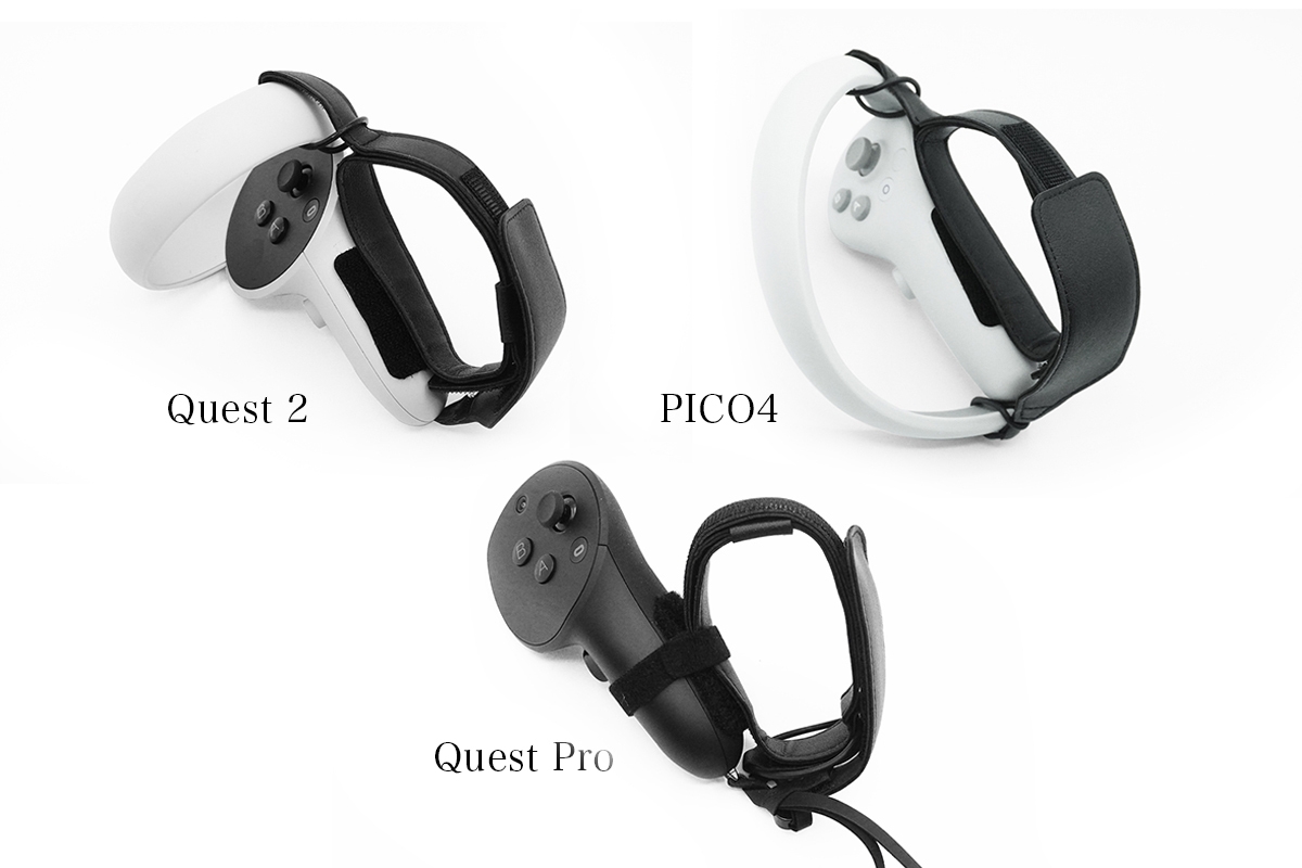Meta Quest 2・PICO 4・Meta Quest Proに対応(Meta Quest 3対応予定)。特にMeta Quest 2・PICO 4に最適設計されていて、激しい運動にも耐えられるようになっています。(商品の機構上、Meta Quest Pro及びMeta Quest 3に関しては、一般的なグリップ補助ベルトとしての使い方になります)※Meta Quest 3は実機未検証のため、対応予定となっています。