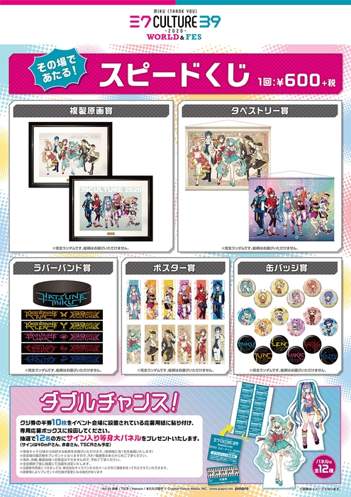 限定商品の販売に加え、その場で当たる「スピードくじ」や初音ミク予約商品の展示も予定。