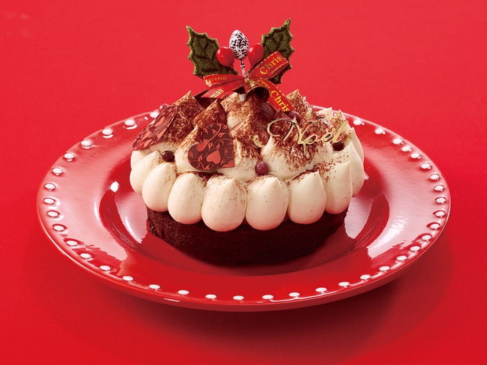チョコレートケーキの定番・ガトーショコラを、クリスマスにふさわしい豪華なホールケーキに落とし込んだ一品です。