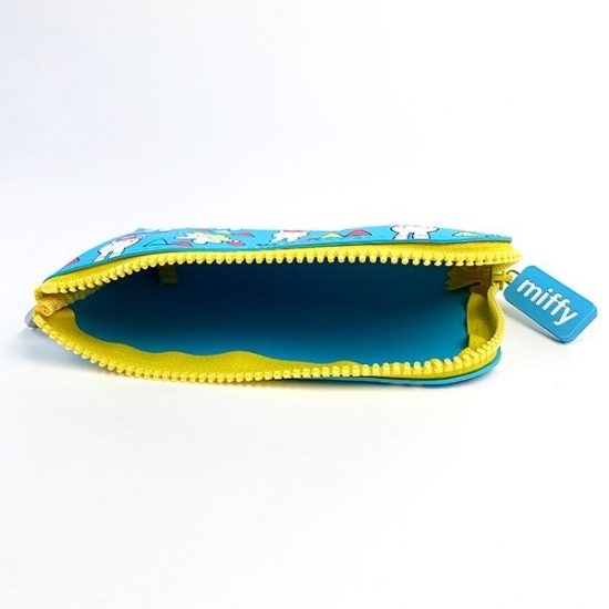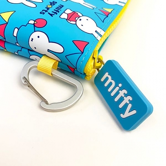 スポーツをするミッフィーたちがチラシ柄になっていてキュート♡ファスナー部分のイエローとの対比も鮮やかです。