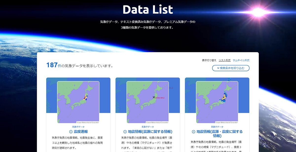 気象データサイエンティストが納得のいくまでこだわって開発した、日本気象オリジナルのデータを提供します。