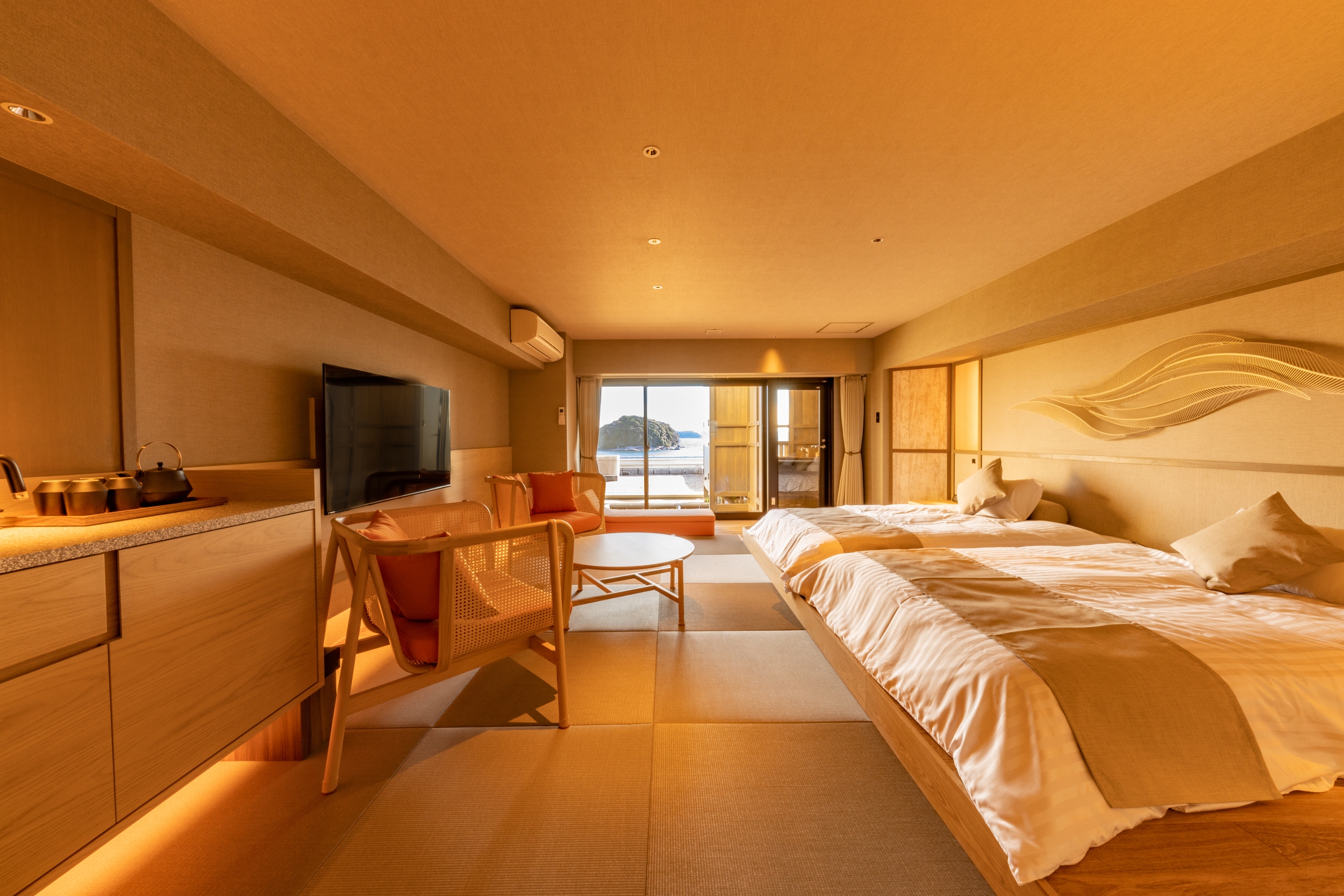 三河湾をのぞむ絶景の宿『蒲郡温泉 ホテル竹島』を運営する蒲郡竹島観光株式会社(所在地:愛知県蒲郡市竹島町1番6号)は2024年2月15日、波穏やかな三河湾を眺めながら天然温泉を満喫できる露天風呂付客室4室をリニューアルオープンしました。