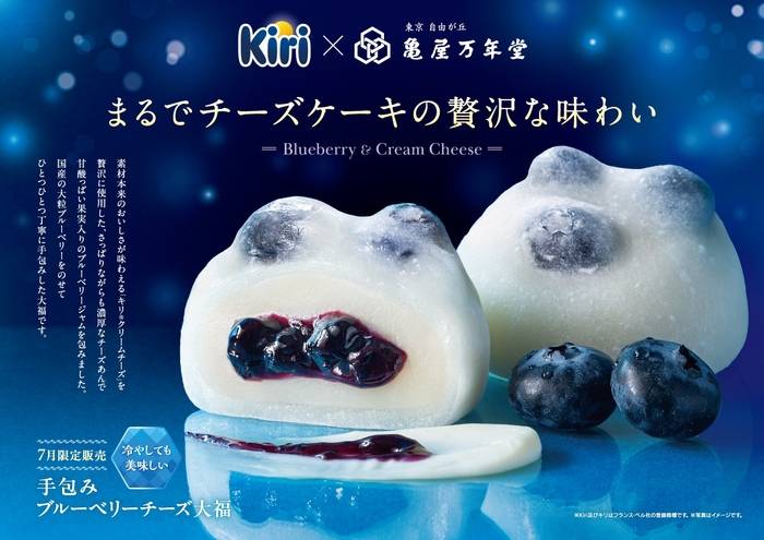 【新商品情報|7月限定】和菓子の新定番「フルーツ大福」と「キリ クリームチーズ」のコラボ『手包みブルーベリーチーズ大福』