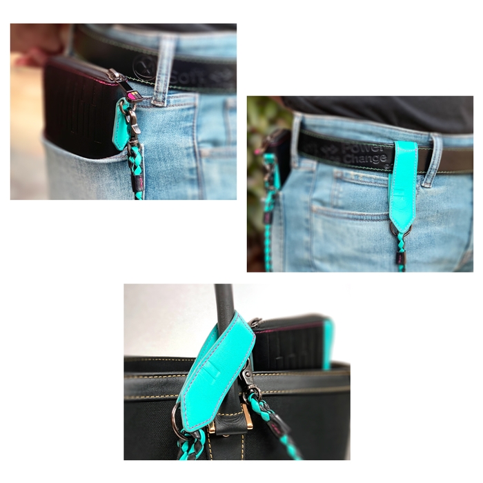 ネクタイ型パーツでベルトにも取り付け可能です。