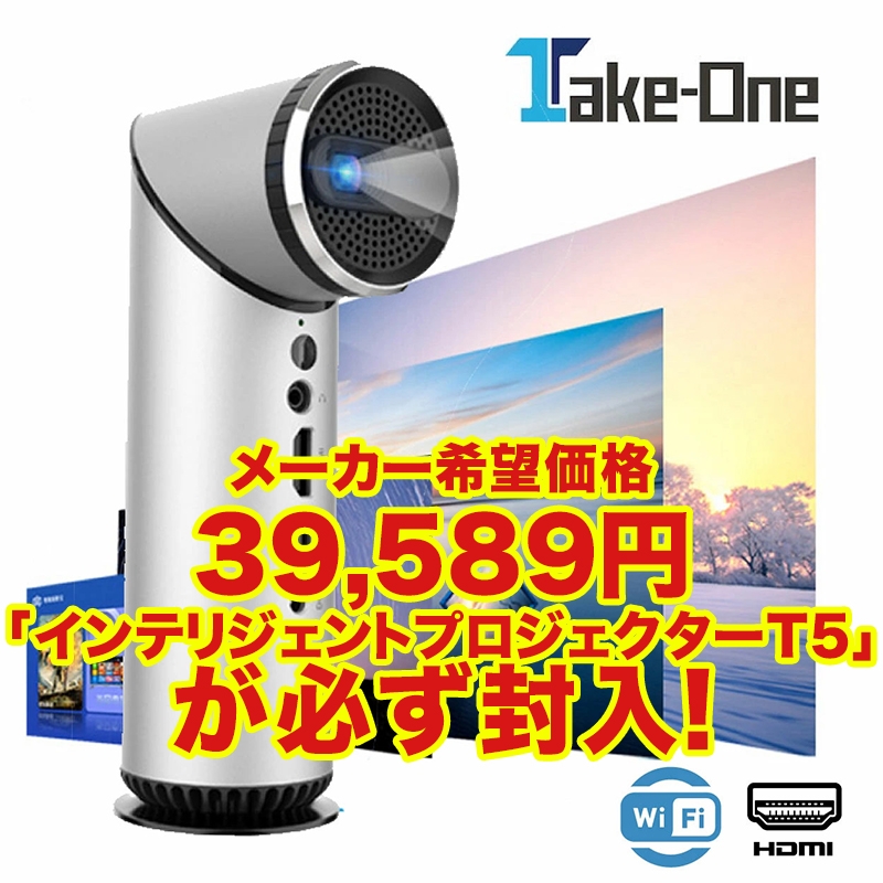 投影向きが90度回転可能な「Take-One インテリジェントプロジェクター T5」が必ず封入する家電雑貨福袋です。