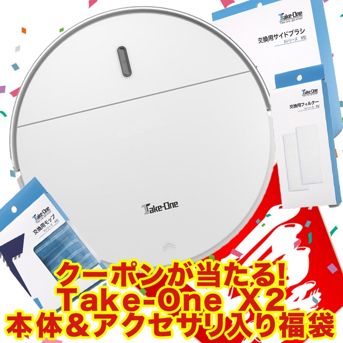 水拭き&吸引同時清掃で人気の「Take-One X2ロボット掃除機」のお得な福袋です。