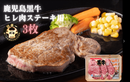 ○鹿児島黒牛ヒレ肉ステーキ用3枚