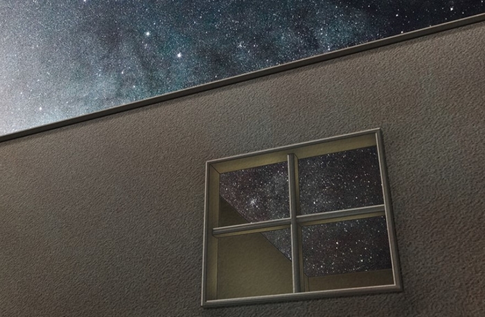 下界とつながる部分は十字窓と大きくひらいた星空だけ