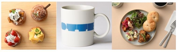 物販(食品・雑貨)ゾーンでは、ハムにチーズ、ワインなど、多彩な食品(約150種類)を販売するほか、食器やキッチン用品、ファブリックなど、シンプルでスタイリッシュなセレクト雑貨(約50種類)も展開します。マグカップなどロゴが入った、ここでしか買えないオリジナルアイテムも登場します。