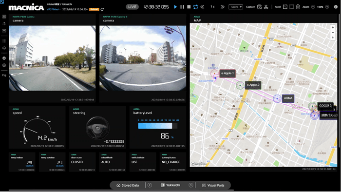 マクニカは、これまでの自動運転移動サービスに係る実証実験運営等の実績を活かし、四日市中央通りを周遊する自動運転EVバスの運行と、自動運転走行に必要なデータ取得・セットアップ、技術的資料・取得データを提供し、効果検証を行います。また、車両の走行データをマクニカ製遠隔モビリティ管理システム「everfleet(エバーフリート)*4」に連携させることで、自動運転EVバスの走行情報をリアルタイムに離れた場所で確認することが可能になります。これにより、将来的に1人のドライバーで複数車両の管理が実現できるようになるなど、社会課題の働き手不足の解消を目指します。