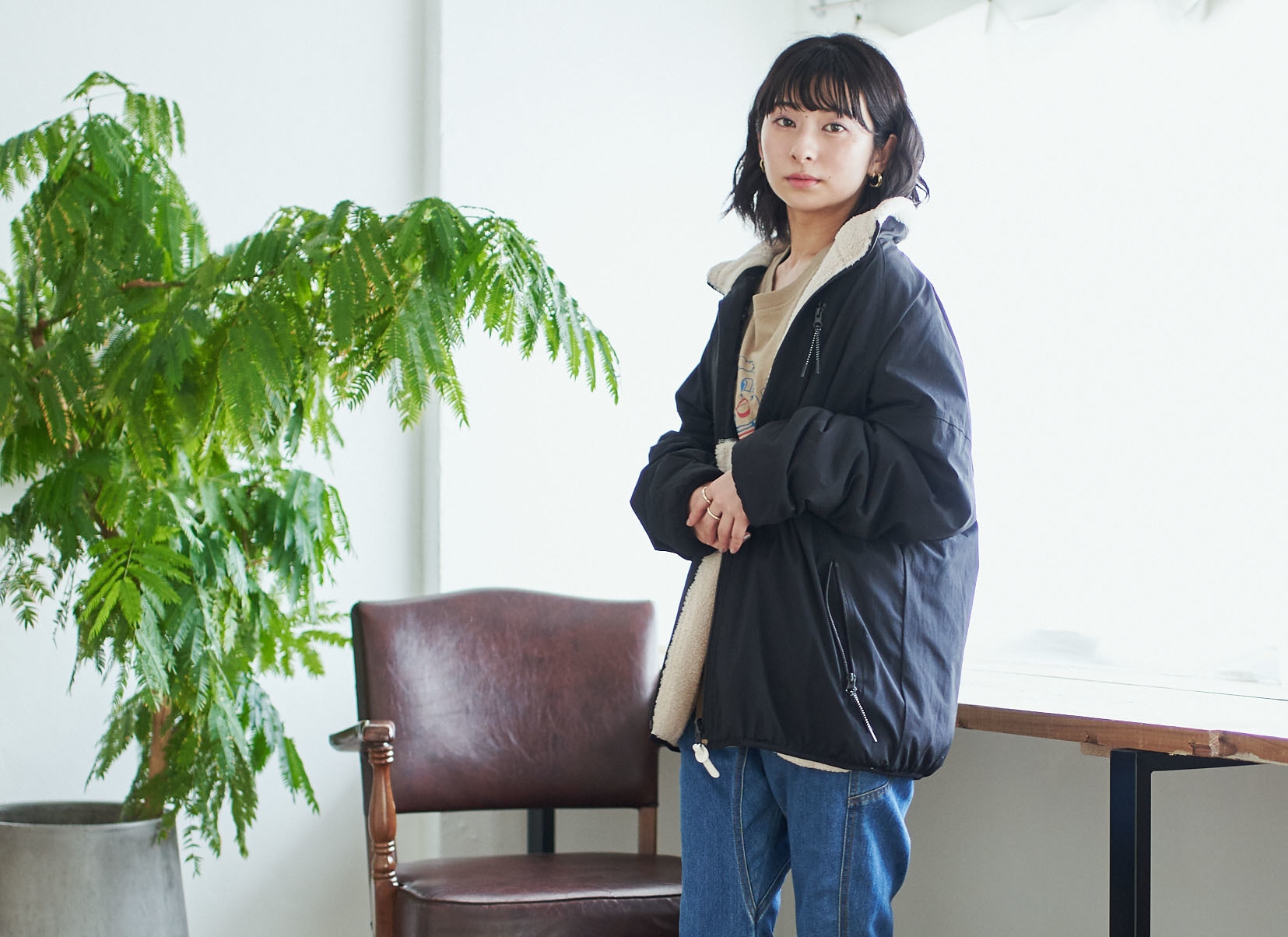 裏面には肌触りがよいプードルボア素材を採用。保温性を重視しつつ“アウターなのに動きやすい!”にこだわりました。