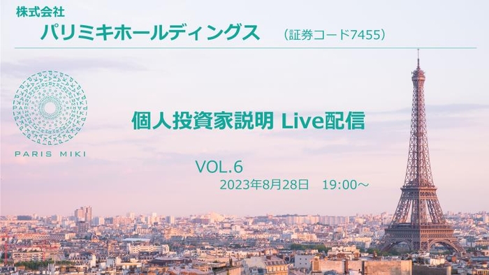 「パリミキ」を展開している株式会社パリミキホールディングス(本社:東京都港区、代表取締役社長:澤田将広)は、ログミー株式会社が提供する、投資家と上場企業との新たな出会いや相互理解を促進し、投資機会を創出するプラットフォーム「logmi IR Live」において、個人投資家向けにオンライン説明会を開催いたしますのでお知らせいたします。