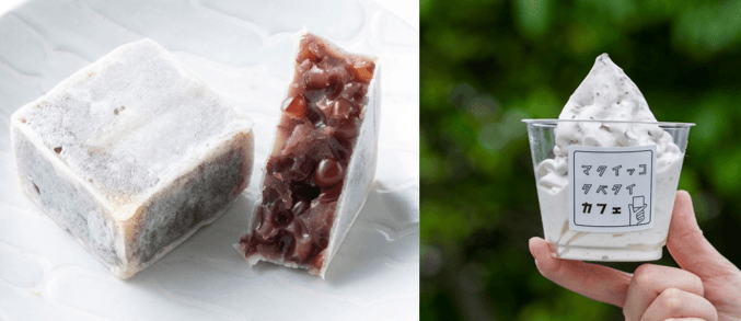 「又一庵」は、明治4年(1871年)、東海道の宿場のひとつ、見附(現在の静岡県磐田市)で創業しました。又一庵は、創業以来、宿場町として栄えた歴史の街にふさわしいお菓子づくりの伝統を守り続け、140年以上の長きにわたって伝統を守り次世代に続く和スイーツの創造を追求してきました。幕張下り線 スーベニアショップ横には、きんつばを丸ごと使用した「きんつばあんこソフト」をはじめとしたスイーツも販売中です。