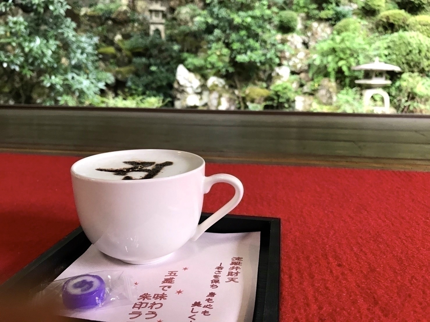 淀殿の御朱印を授与された方のみに提供している『御朱印ラテ』。夏季はお休みしていましたがこの秋から授与を再開いたします。御朱印とセットで800円。