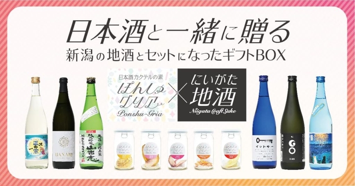 株式会社FARM8は、日本酒カクテルの素「ぽんしゅグリア」と新潟のお酒をセットでプレゼントできる「ぽんしゅグリアxにいがた地酒」ギフトボックスを発売しました。